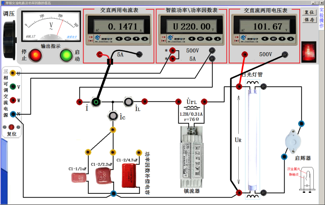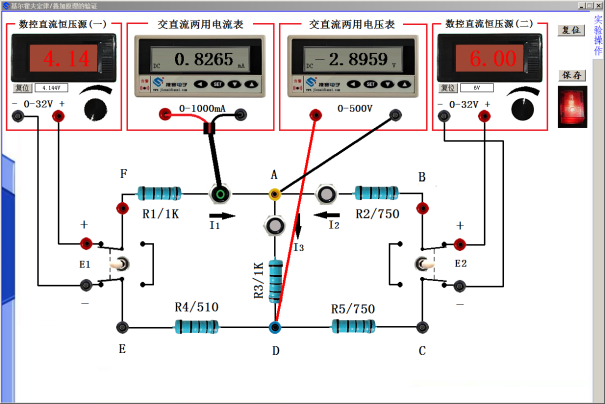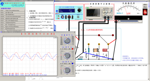 各實(shí)驗(yàn)內(nèi)容獨(dú)立呈現(xiàn),根據(jù)實(shí)驗(yàn)要求配置相關(guān)儀器儀表,包含有數(shù)控直流恒壓源、數(shù)控直流恒流源、交直流兩用電壓表、交直流兩用電流表、函數(shù)信號(hào)發(fā)生器、雙通道數(shù)字示波器、交流毫伏表、萬(wàn)用表、功率、功率因數(shù)表、單三相交流可調(diào)電源,儀器儀表具有和實(shí)物相同的操作方法,具有超量程、短路、過(guò)流報(bào)警等功能;